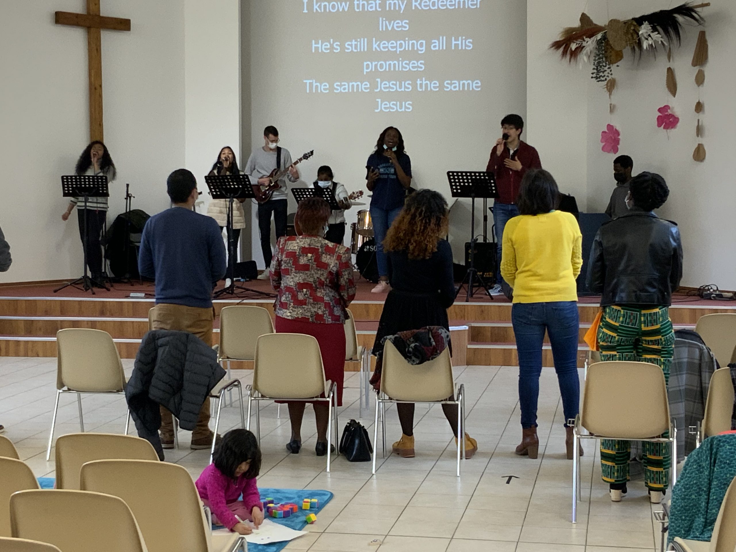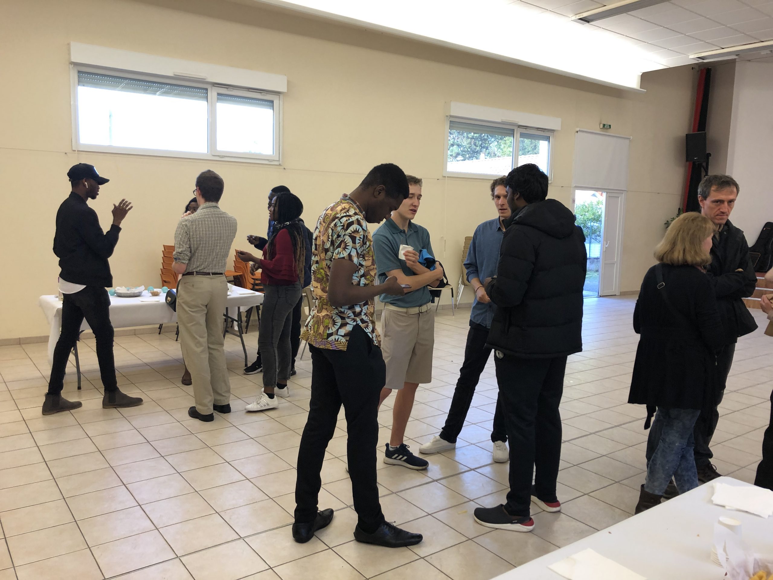 L’assistance varie selon les périodes entre une quinzaine et une trentaine de participants. Chants en anglais et en français, prières dans différentes langues, discussions en petits groupes… Toutes les interventions sont traduites du français à l’anglais et vice-versa. Chaque culte se termine autour de pizzas/quiches et boissons, ce qui permet une bonne convivialité et la possibilité de faire la connaissance des nombreux étudiants qui nous visitent. Cette communauté est une vraie famille pour les étudiants et beaucoup restent en contact avec nous bien après leur départ de Nantes. Il n’est bien sûr pas facile de les voir partir à l’issue de leur stage ou de leur 18 mois de master…