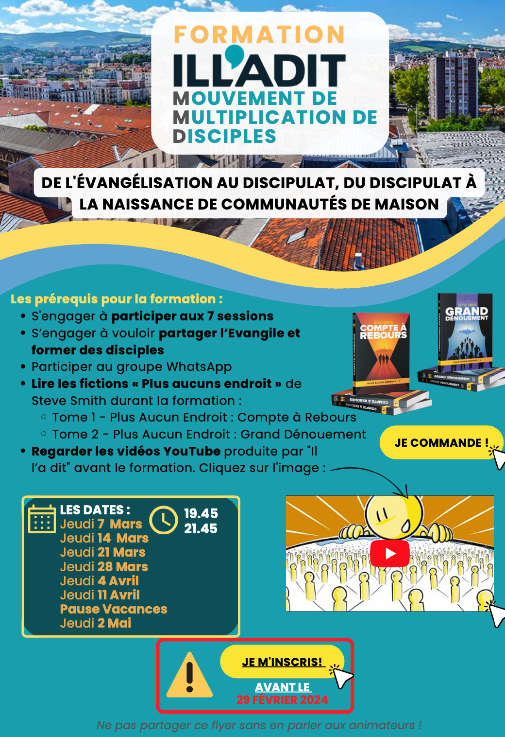 C’est une formation pratique visant à favoriser la naissance de mouvements de multiplication de disciples. Elle est proposée en partenariat avec « Il l’a dit » (illadit.com).