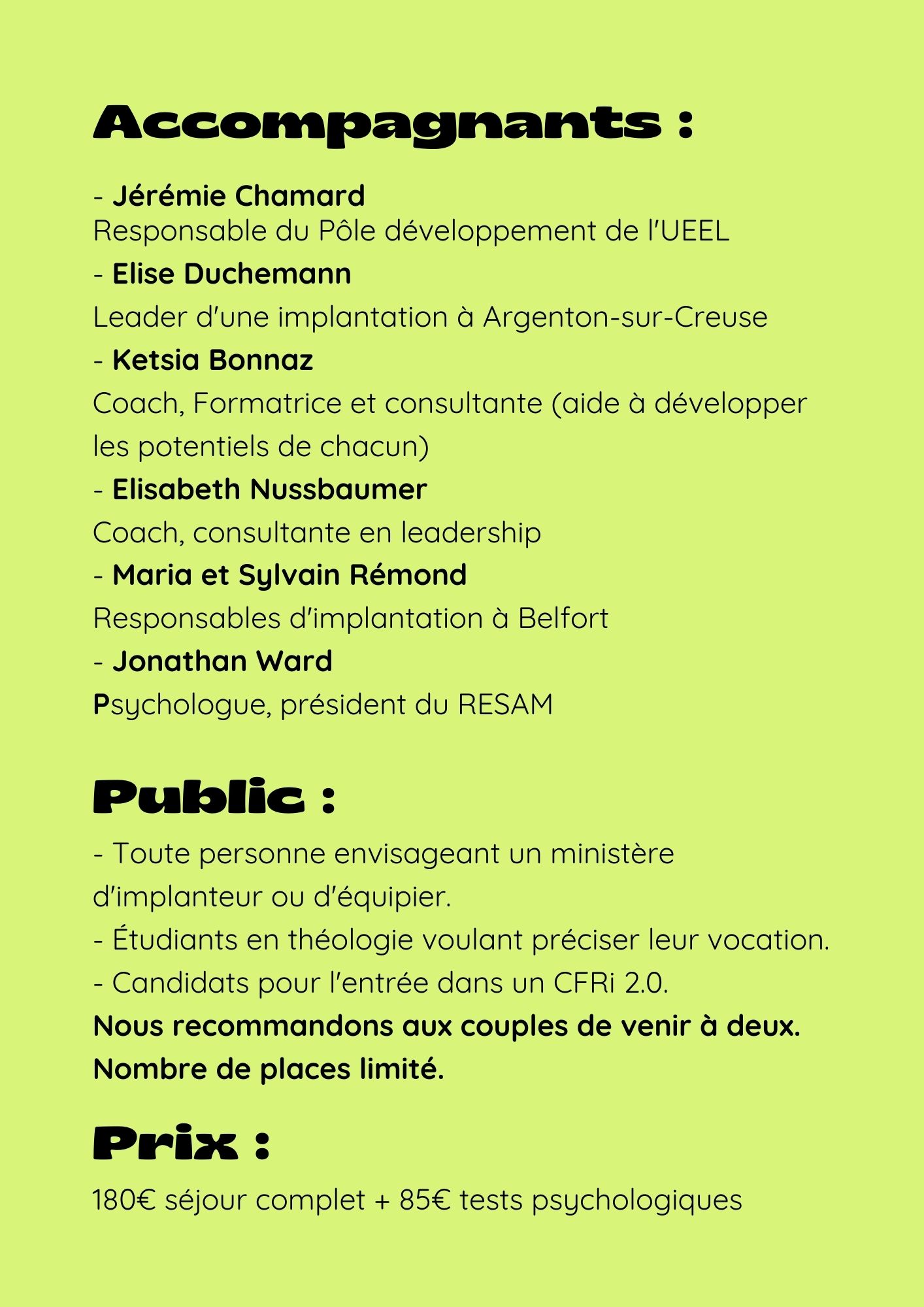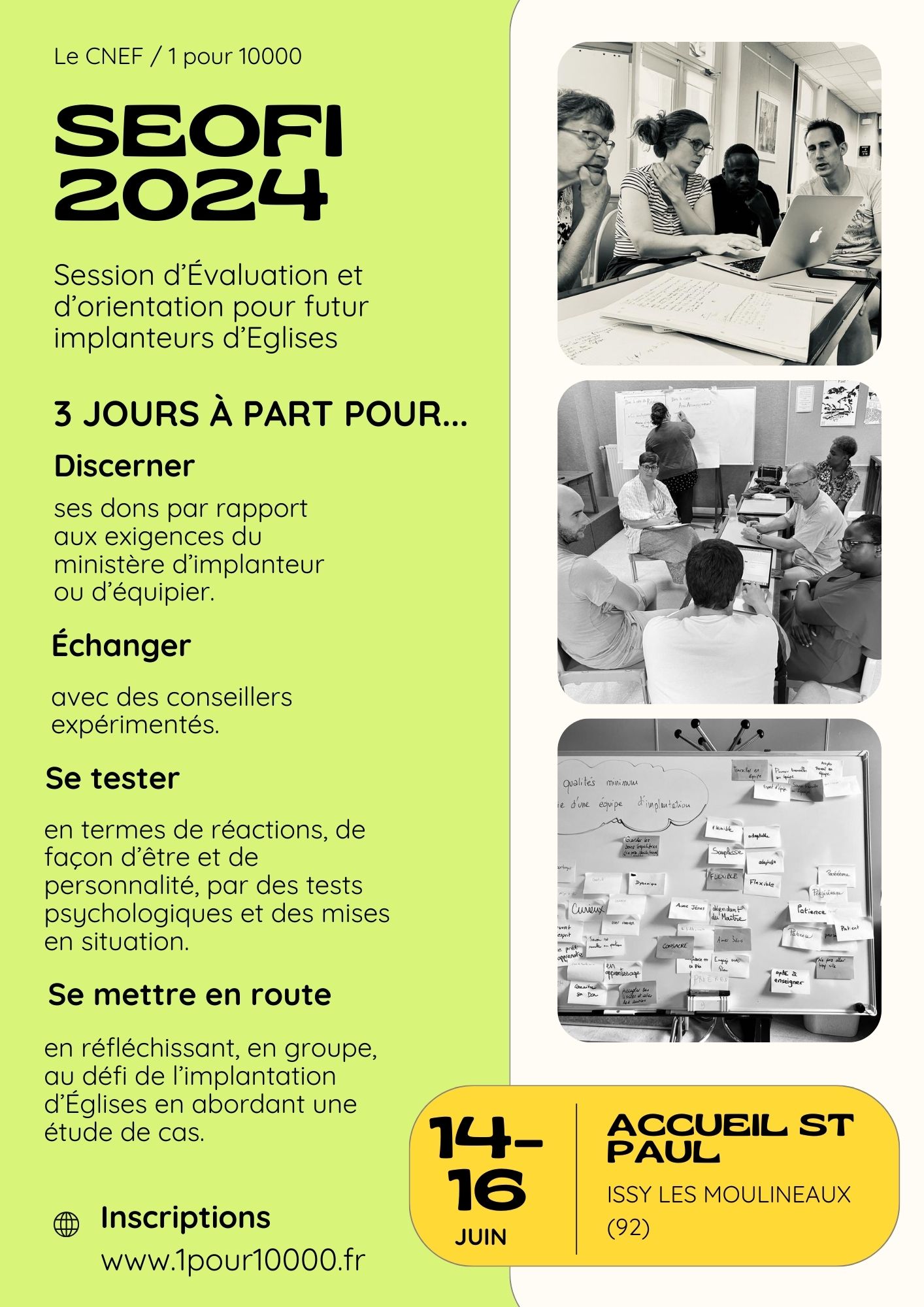 • discerner ses dons par rapport aux exigences du ministère d’implanteur ou d’équipier, échanger avec des conseillers expérimentés (dont Élise Duchemann !) ;