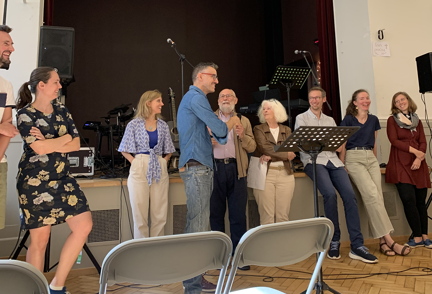 10 ans plus tard, c’est avec beaucoup de joie et d’émotion que nous avons vécu une journée festive. Célébration, jeux en bois, fresque participative, concert gospel. Une journée stimulante où les membres actuels et les nombreuses personnes qui ont été au bénéfice de l’Église se sont rassemblées pour se souvenir de la grande fidélité de Dieu et lui dire merci. Merci d’avoir utilisé nos faibles moyens pour construire l’Église, pour avoir rendu possible nos rêves, pour toutes les occasions de témoignages, pour la quarantaine de baptêmes, pour les nombreux mariages et les nombreuses naissances qui vont avec, pour la vie en Église rassemblée le dimanche, pour la vie dans les petits groupes, pour le témoignage de l’Église dispersée, pour le discipulat, pour la transformation des cœurs, pour les personnes qui se sont levées pour servir localement, pour celle qui se sont formées en vue du ministère. Nous pouvons également être reconnaissants pour la façon dont Dieu a soutenu l’œuvre associative du café Oh my Goodness ! qui a été jusqu’à aujourd’hui un bras missionnaire de l’Église et qui jouit d’une belle réputation dans la ville. Il y aurait encore beaucoup de raison de se réjouir. Un des points forts de la journée a été les témoignages de l’équipe de départ. Chaque équipier a pu partager les souvenirs marquants.