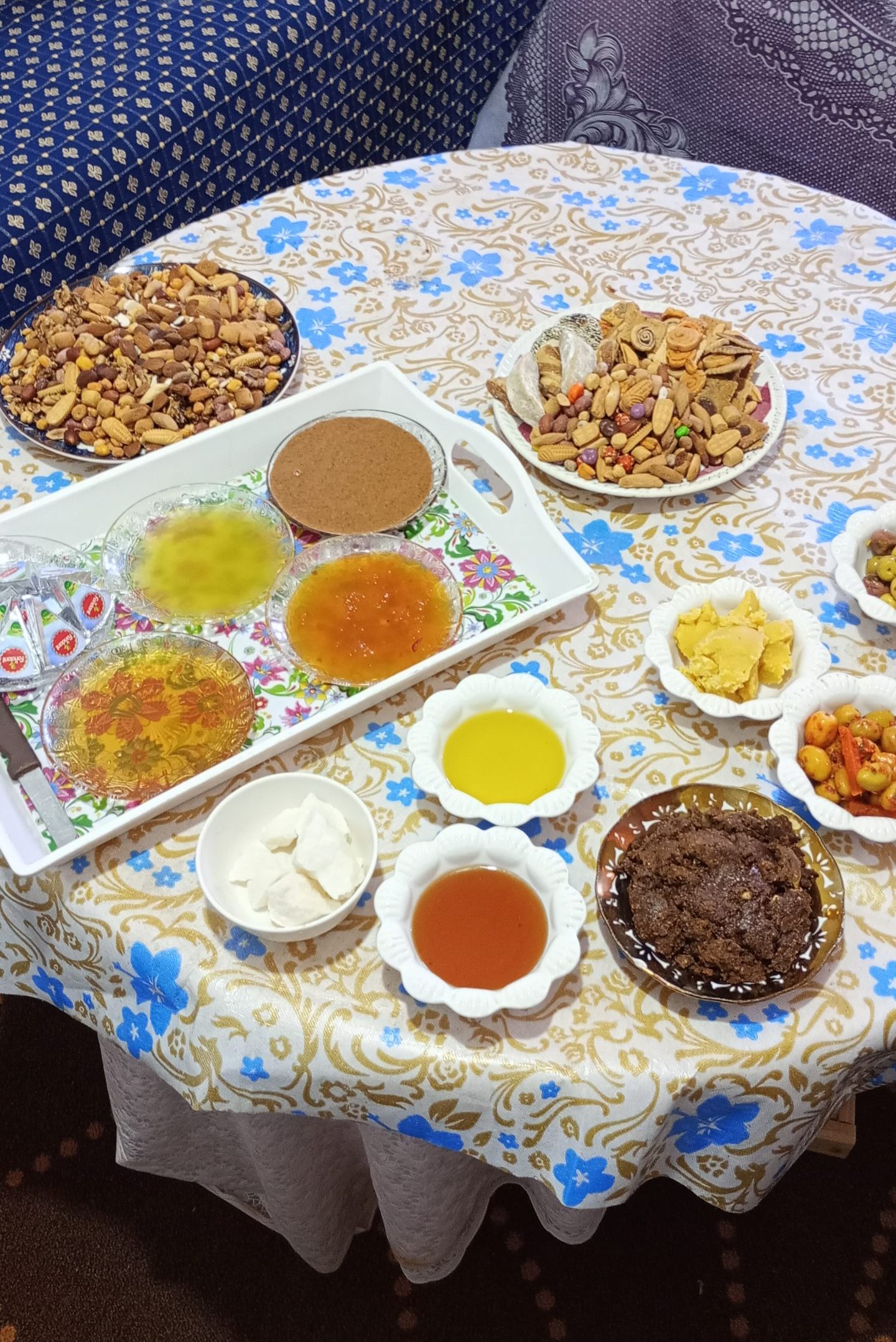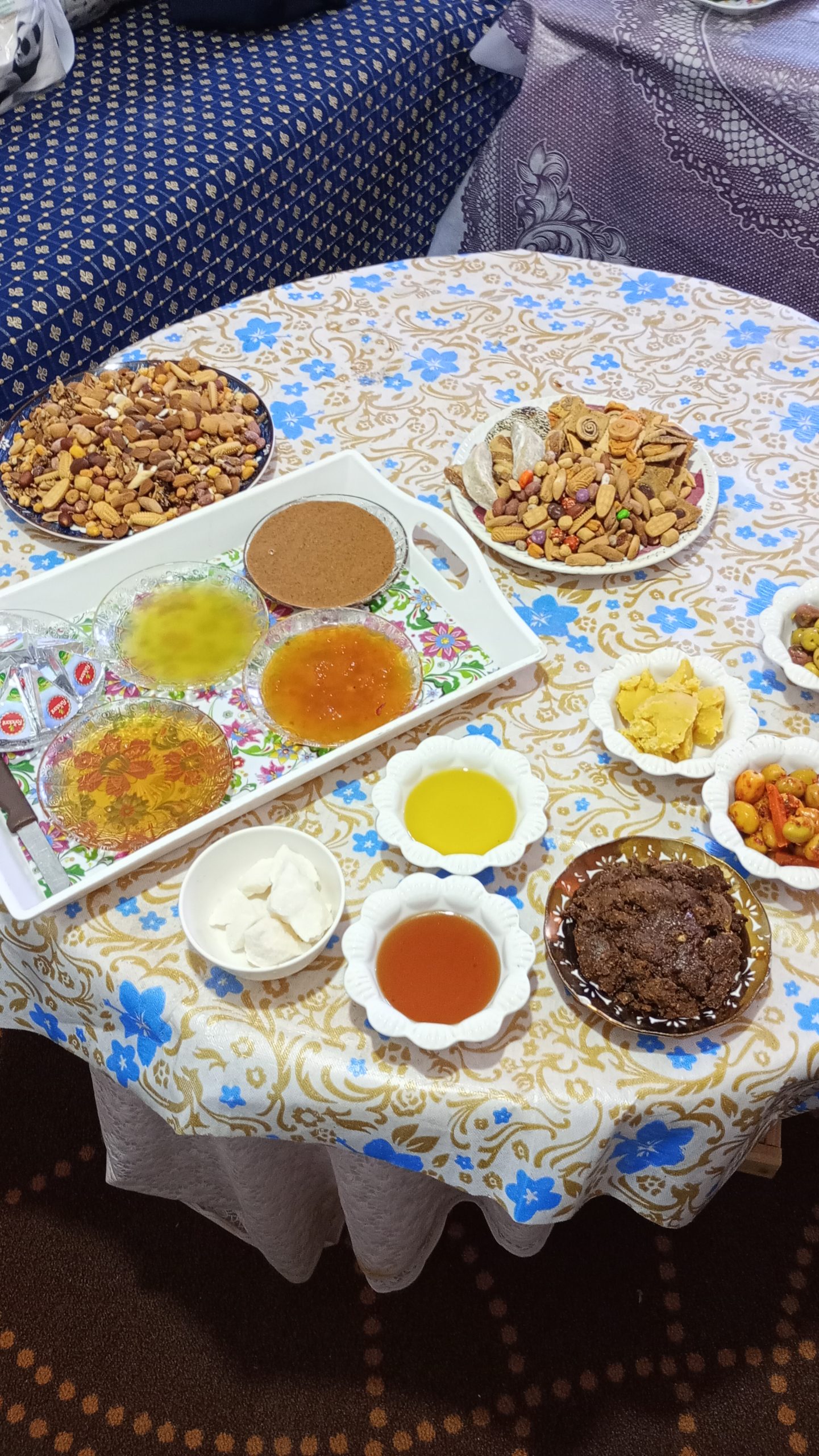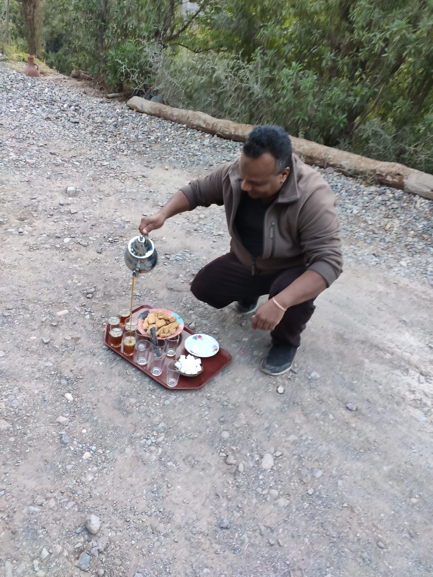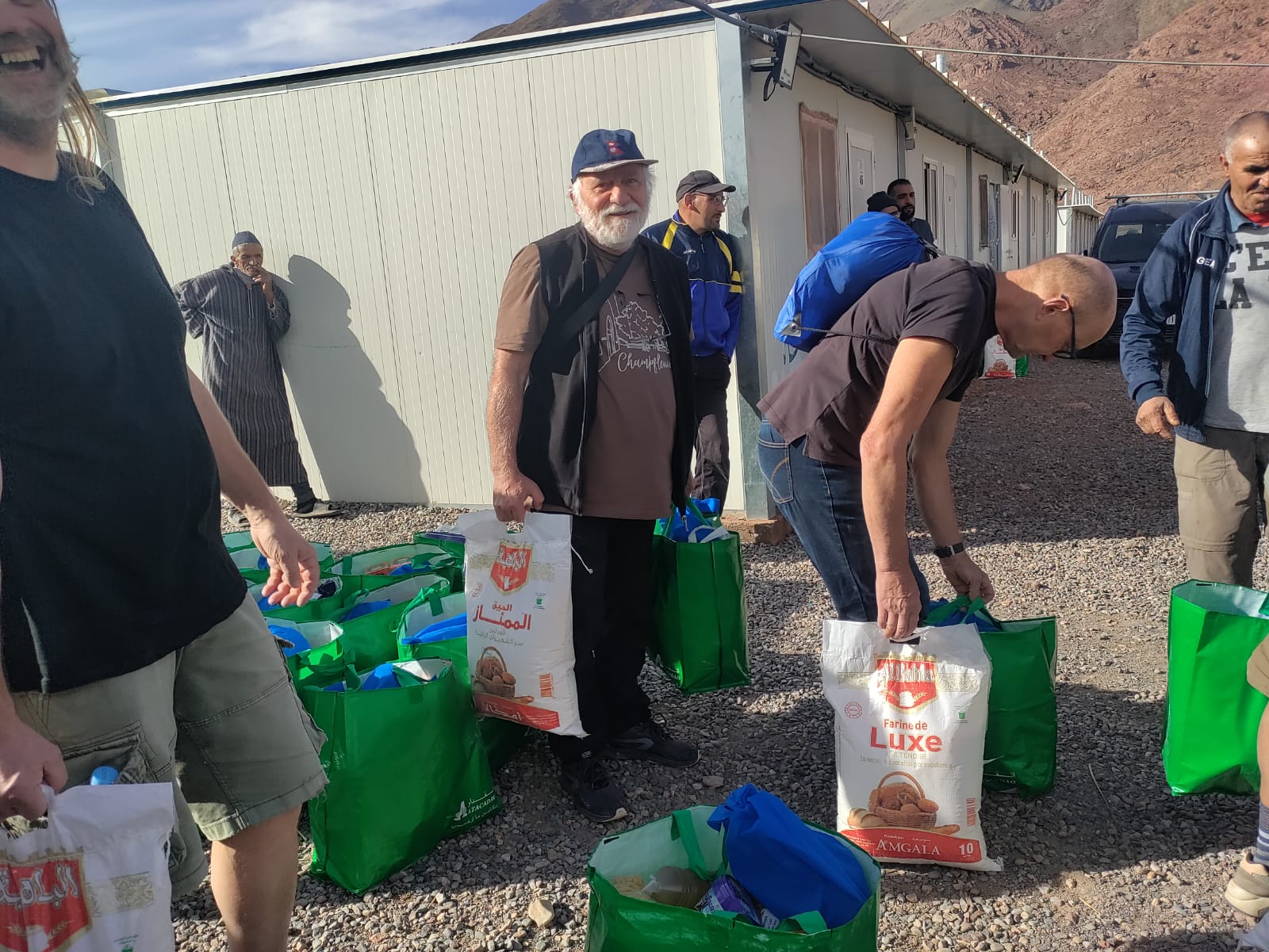 Puis, dans chaque village livré, confection et distribution de colis de nourriture. L’unique consigne donnée par les responsables locaux : tous les colis devaient contenir strictement les mêmes produits et dans les mêmes quantités. À la fin de chaque livraison « à domicile » nous étions très heureux de prendre 5 minutes de repos le temps de rejoindre le lieu de distribution pour une nouvelle livraison : 10 kg de farine dans une main et un sac d’une vingtaine de kilos dans l’autre. Il me semble que j’ai souvent été envoyé loin et haut dans les villages ? Mais quel accueil ! Thé ou café et petits gâteaux avant de commencer et thé ou café et petits gâteaux à la fin des livraisons et même plusieurs fois tajines ou couscous dans l’intervalle…